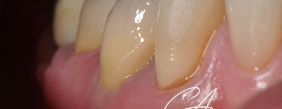 Buongiorno a tutti, oggi mi piacerebbe condividere con voi un caso multidisciplinare. Il paziente si presenta per ricorrenti ascessi in sede 45 e 44. Entrambi gli elementi vengono sagomati con strumenti espansivi. L'elemento 44 viene otturato con tecnica single cone e bioceramico mentre l'elemento 45, a causa del diametro importante (> 80) e per la forma ovale del sistema endodontico, viene sottoposto ad apical plug in MTA. Gli elementi vengono poi sottoposti a fase ricostruttiva (in seguito a disassembling delle corone) e limati con tecnica BOPT e il provvisorio viene mantenuto diversi mesi per condizionare i tessuti. Tutto bene, fino a quando non mi sono fatto realizzare le corone definitive. Ho notato subito che avrei ottenuto una vistosa disomogeneità dei livelli gengivali; ho pertanto deciso di proporre al paziente (a mie spese), un innesto gengivale libero per l'ispessimento dei tessuti gengivali. Ho quindi modificato la lunghezza e il profilo di emergenza della corona 44 e cementate entrambre le corone con cemento provvisorio in attesa della maturazione dei tessuti.